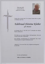 Meine schöne Kindheit verbrachte ich im Kaufhaus Kloiber und Café Brunner. Fr. Kloiber lies mich immer an der Kassa sitzen und kassieren. Es war toll, als Belohnung bekam ich dann Bananenstangerl. Ich habe diese Zeit nie vergessen. Nun sind Sie eingeschlafen, ich schicke Ihnen ganz liebe Abschiedsgrüße und Engerl sollen Sie begleiten auf Ihrer Reise.